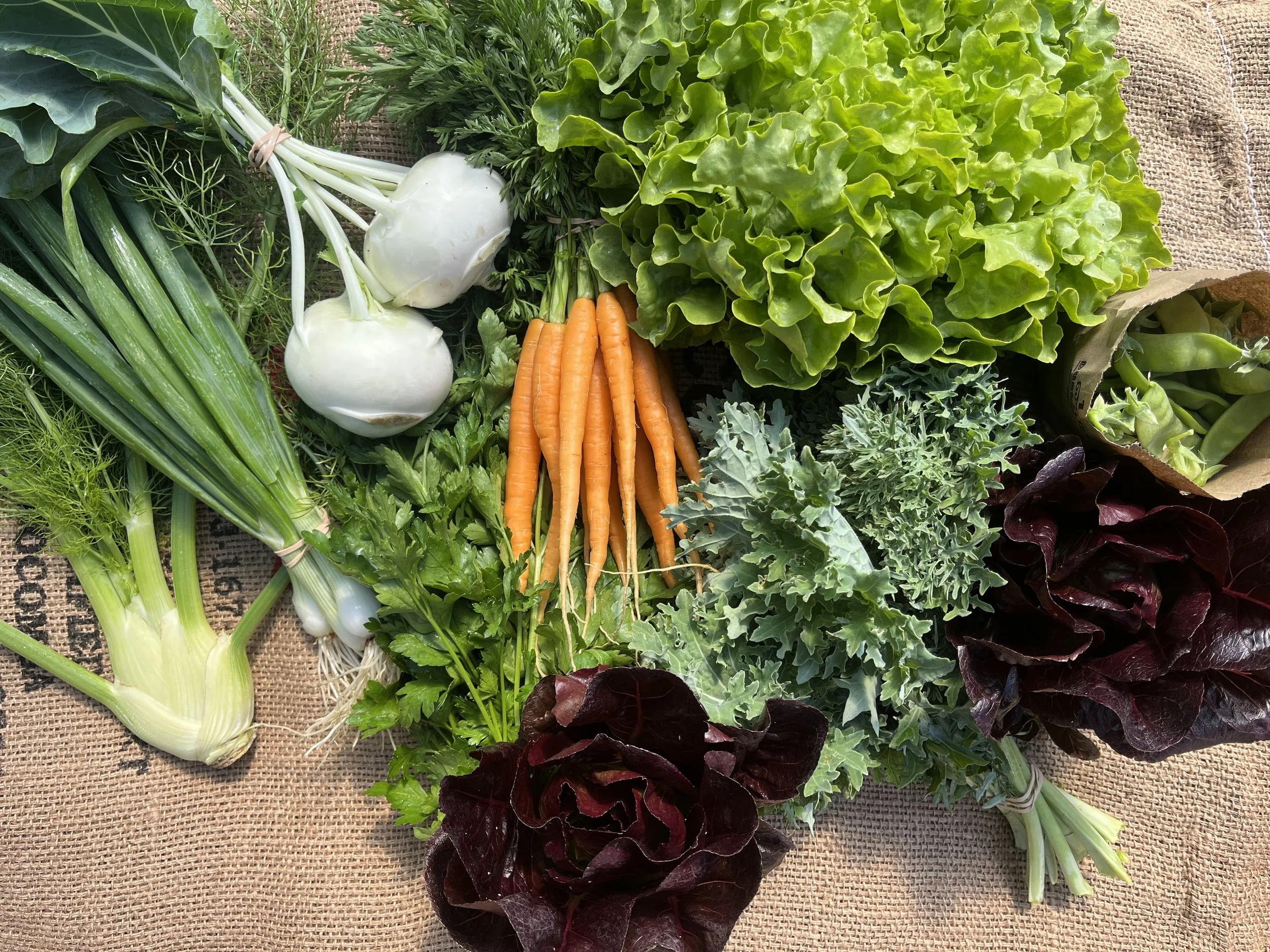 We specialize in growing garlic, 23 varieties and counting! As well as lettuce and many of the classic market garden vegetables including carrots, tomatoes, peppers, cucumbers, herbs, and so much more.